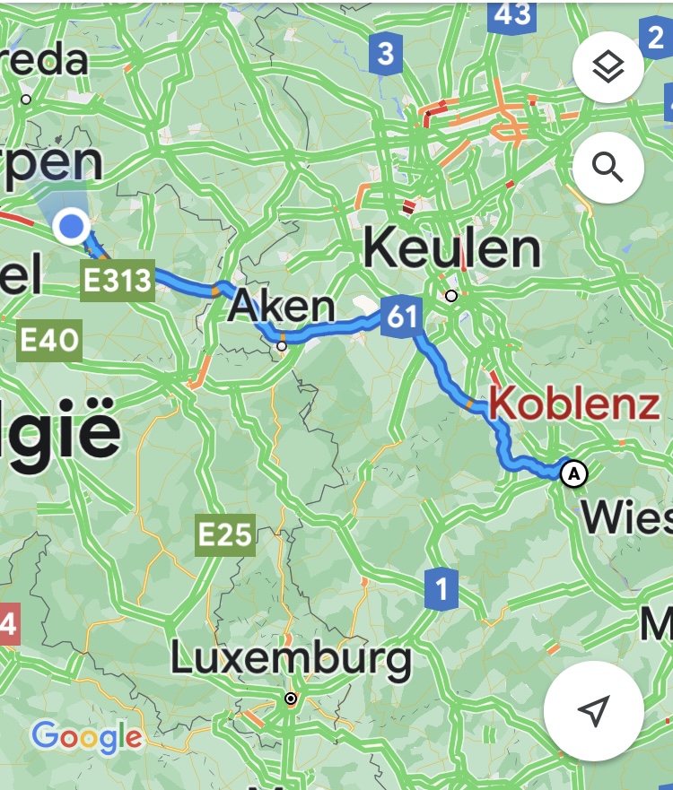 De aankomst in Koblenz is laat omwille van onvoorziene fileperikelen. Files zijn blijkbaar enkel in België een probleem. We geraken verstrengeld in een lange kijkfile. De oorzaak is een ongeval in de andere rijrichting. Tot overmaat van ramp blijkt de camping die we in het vizier hebben volzet. Na een korte zoektocht belanden we op Campingplatz Gülser Moselbogen (https://www.moselbogen.de/). De drukte van de zomervakantie is nog niet helemaal voorbij en ook deze camping is bijna vol. We claimen een van de laatst beschikbare plekjes.