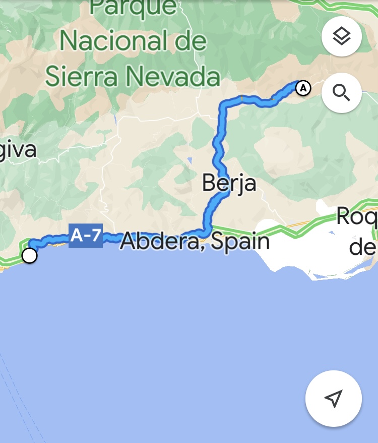 Ik overnacht op Camping Almócita  (https://campingalmocita.es/) in het gelijknamige dorp. Het is een vrij nieuwe camping met bar en restaurant, net sanitair, faciliteiten voor de camper en op loopafstand van 2 mooie bergdorpen, nl Almócita en Padules. Dat zijn een aantal vliegen in een klap. Wie naar Camping Almócita rijdt, volgt best de bordjes van de camping om de smalle straatjes in het dorp te vermijden. Daarin verzeild geraken is geen goed idee. De steegjes van Almócita zijn echt te smal voor campers.  Het is vreemd om in short en t-shirt tijd door te brengen op de camping met uitzicht op de eeuwige sneeuw.