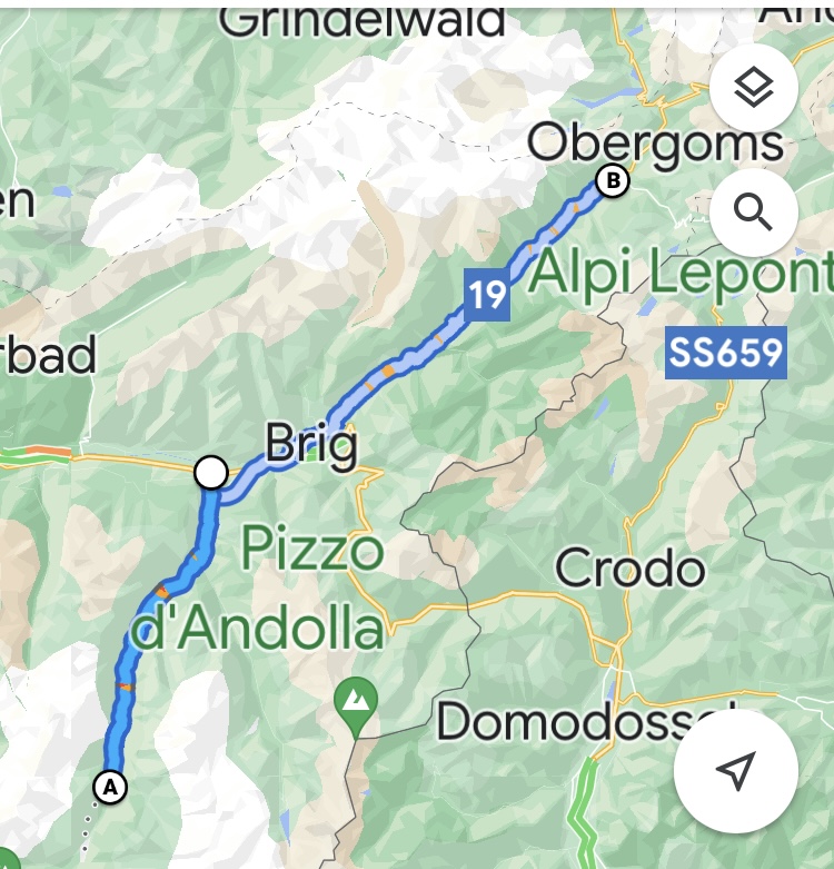 Na 4 dagen is het tijd om afscheid te nemen van Claude. Aan het treinstation van Brig scheiden onze wegen onherroepelijk. We spreken af dat we elkaar vroeg of laat weer ontmoeten. Het blijft koffiedik kijken of het er ooit van komt. Voor fervente reizigers die graag hun eigen weg gaan, is dat niet zo evident. Ik heb in ieder geval van elk moment genoten. Nogmaals dank!