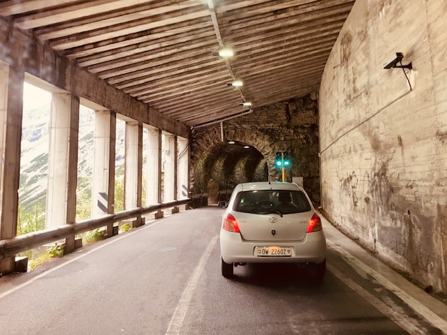 Het wegdek is goed berijdbaar maar soms erg smal. Vrachtwagens zijn nergens te bespeuren. Om alle bochten goed te nemen, moet ik af en toe afwijken van mijn rijvak en hopen dat er geen tegenligger in de bocht opduikt. Er ontbreekt een bijrijder om in de haarspeldbochten even vooruit te kijken. De snelheid aanpassen en alert blijven is de enige oplossing. De smalle bochten en het stijgingspercentage van 15% bezorgen me bij momenten kippenvel. Dit is puur genieten.