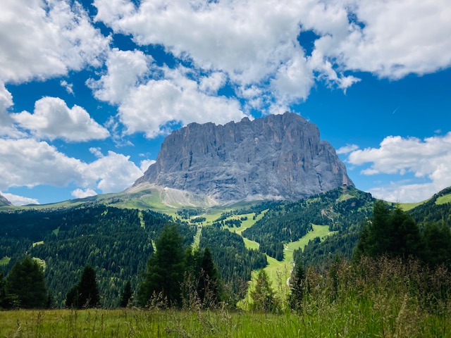 In de namiddag is het tijd om nog wat kilometers te malen. Vlaanderen krijgt sinds vandaag code oranje van Europa omwille van de opflakkerende corona pandemie. Dat is in de eerste plaats geen goed nieuws voor de getroffenen, maar ook niet voor zwervers die elders vertoeven. Als het van oranje naar rood gaat, mogen Belgen wellicht nergens meer binnen. Elke landsgrens die ik bereik, is meegenomen. Oostenrijk halen is het volgende doel van een lange rij landen. De route zonder tolwegen gaat langzaam vooruit via kleine dorpen, bochtige wegen en opnieuw een schitterende bergpas. Beter gezegd een combinatie van 2 bergpassen, nl de Sellapas en de Gardenapas. Het Sellamassief is een indrukwekkend bergmassief in de Dolomieten. Het hoogste punt ligt op 2236 m. De bergpas is het hele jaar geopend en erg populair bij fietsers die van geen opgeven weten. Het stijgingspercentage bedraagt op sommige stukken 14%. Er zijn een aantal aardige haarspeldbochten. Ik ben weer in mijn element.