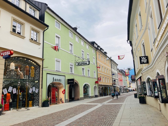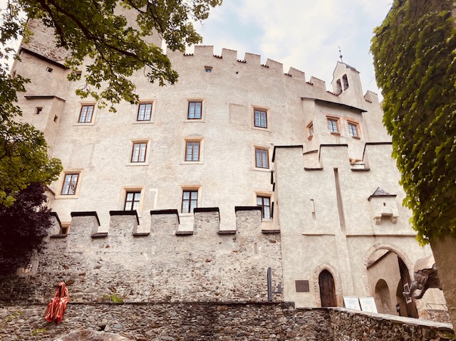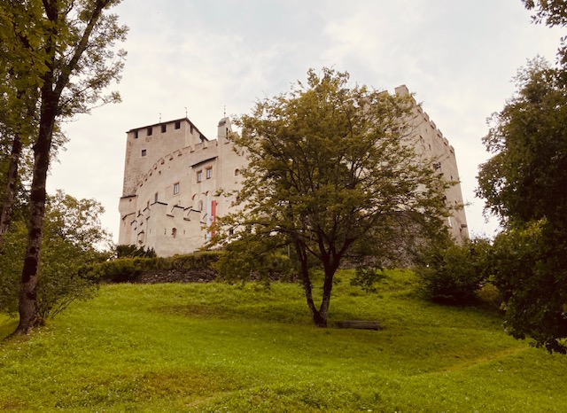Lienz ligt aan de voet van de Dolomieten. De kleine stad met 12.000 inwoners is de hoofdstad van Oost-Tirol. Het opmerkelijkste gebouw is ongetwijfeld Schloss Brück dat even buiten het centrum, hoog boven de stad uittorent. De middeleeuwse burcht dateert uit de 13de eeuw en had in die tijd vooral een strategische functie. Volgens Maps.me, de app die me overal de weg toont ligt het kasteel slechts 2,5 km van Camping Falken. Het is tijd voor een ochtendwandeling. Mijn tocht brengt me naar het pittoreske centrum van Lienz met zijn mooie winkelstraten. Het ligt er op zondag verlaten bij.