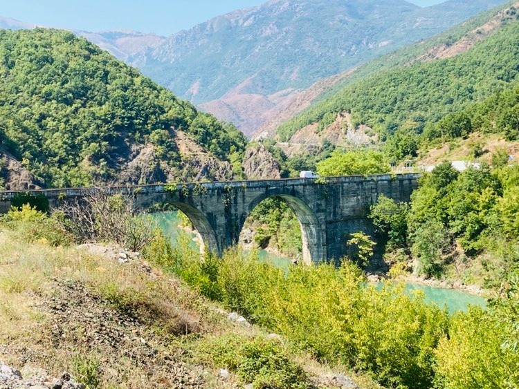 Het gaat opnieuw richting Montenegro over dezelfde slechte bergweg van gisteren. Hoewel het uitzicht bij momenten fenomenaal is, wordt het een lange en weinig comfortabele rit. De inhoud van de kasten en de chauffeur krijgen het zwaar te verduren. Het is een kunst op zich om alle gaten in het wegdek te omzeilen en tegelijkertijd de Albanese chauffeurs minutieus in’t oog te houden. Er gebeuren af en toe vreemde dingen in het verkeer. Hoewel het nog niet helemaal comfortabel aanvoelt, begint het wel te wennen. Het traject in tegenovergestelde richting doen, zorgt voor onverwachte panorama’s die ik gisteren miste.