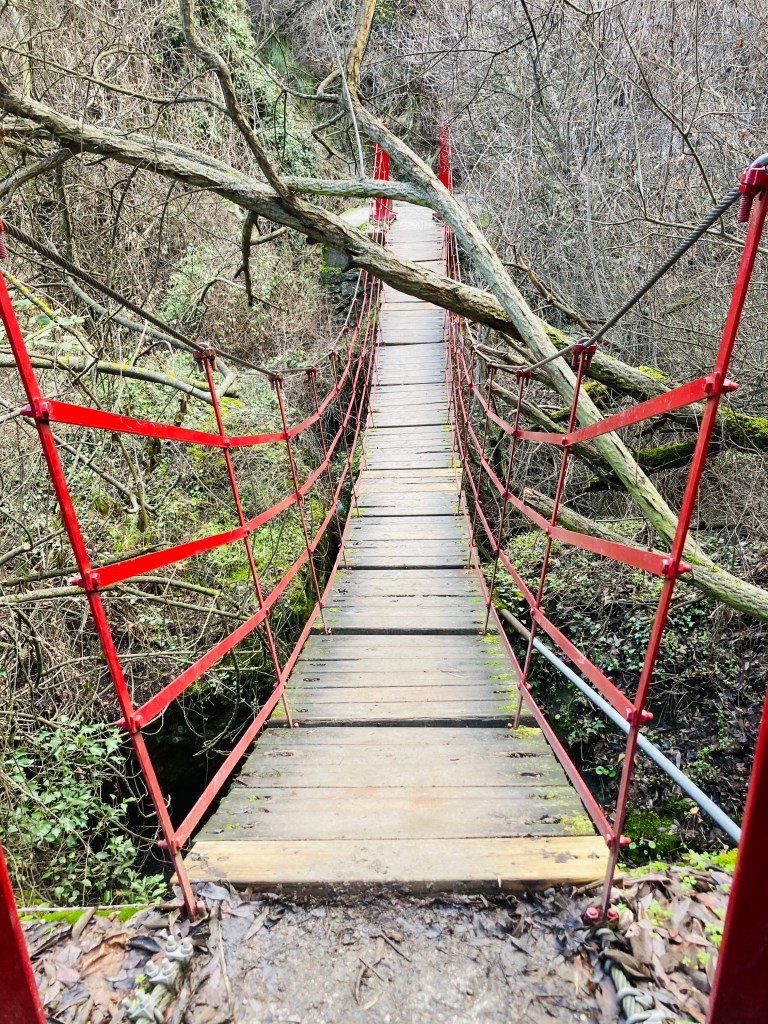 De 4 hangbruggen zijn zowat het symbool van de route. Het eerste exemplaar is teleurstellend en lijkt afkomstig uit een slecht onderhouden speeltuin. De natuur eromheen blijft betoverend.
