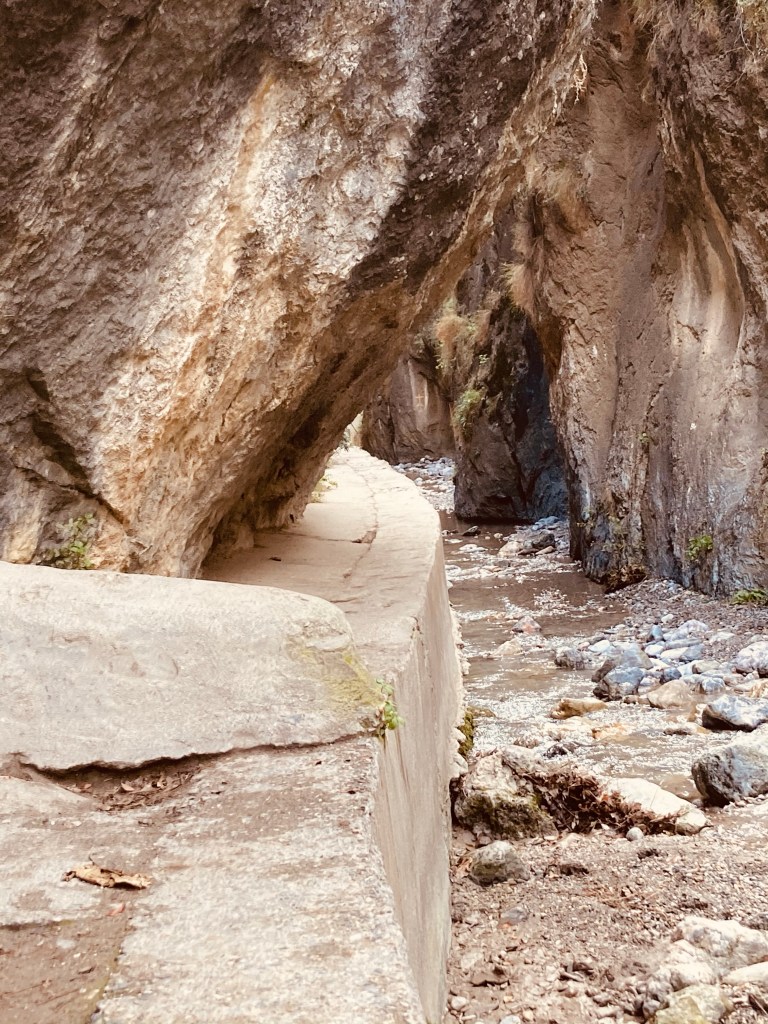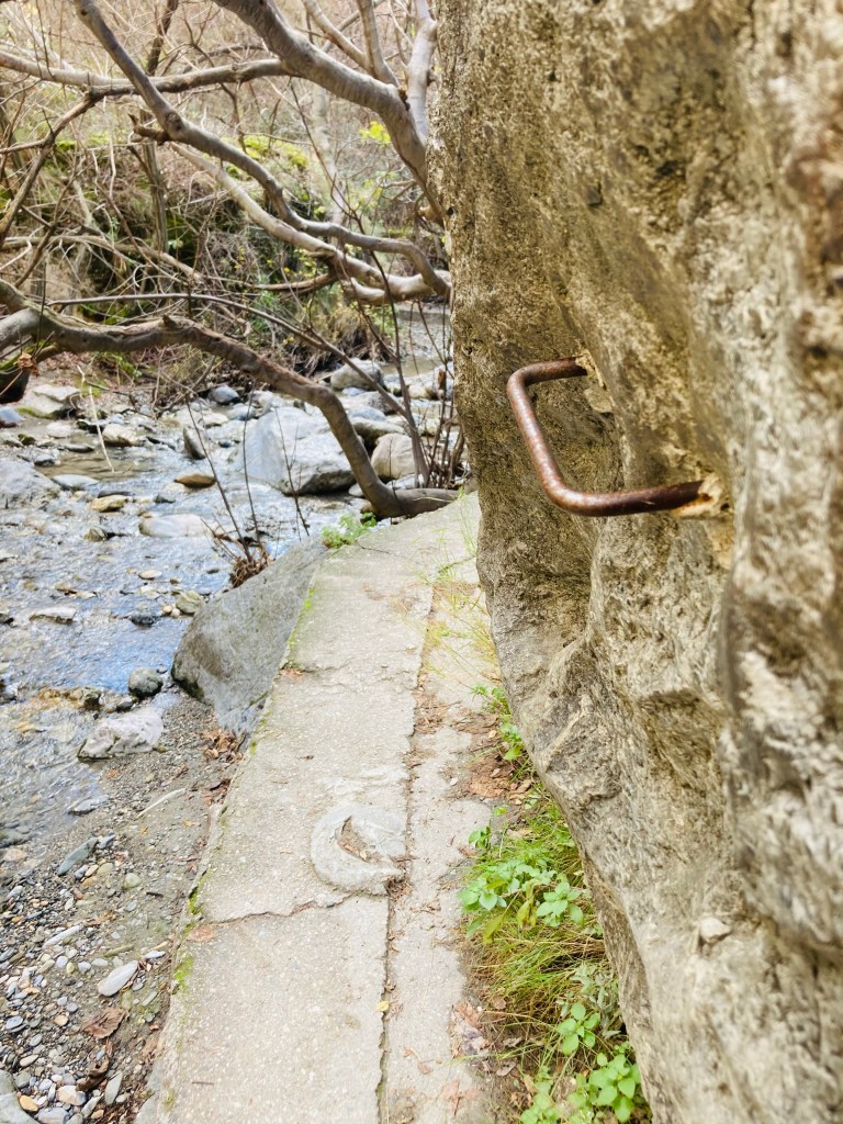 Er volgt een verhoogd betonnen pad naast de rivier. Het is goed begaanbaar maar op sommige plaatsen zeer smal. De overhangende rotsen vormen een bijkomende hindernis. Bij de moeilijkste stukken zijn handgrepen geplaatst om te vermijden dat je in de rivier tuimelt.