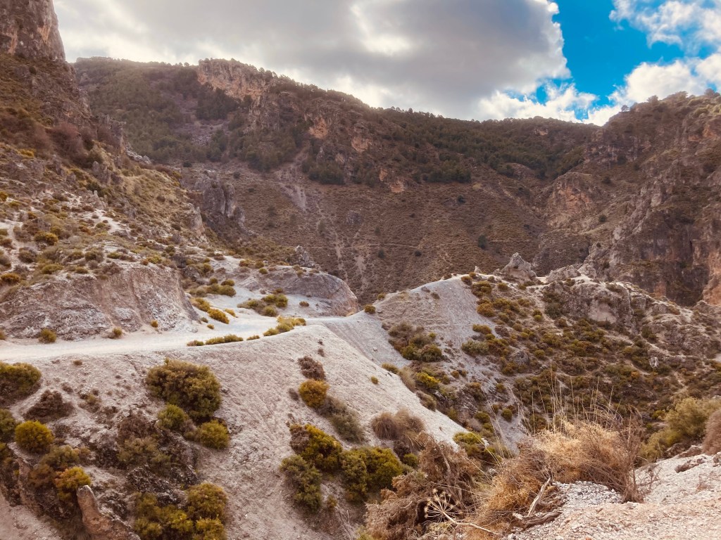 Het is 9 graden en bewolkt. Warm ingeduffeld en met pas gepoetste schoenen begin ik aan de uitdaging. De Los Cahorros-trail loopt door een natuurgebied langs en over de Monachil rivier. Na amper 500 m heb ik een déjà vu. De smalle weg naast de rivier is een en al modder. Het is erg glibberig. Gelukkig hangen er overal takken die bruikbaar zijn als handvat om te vermijden dat ik meteen in de stromende rivier sukkel. Een nat pak bij deze temperatuur is niet het meest aangename. Het schoenen-poetswerk van gisteren was een maat voor niets.
