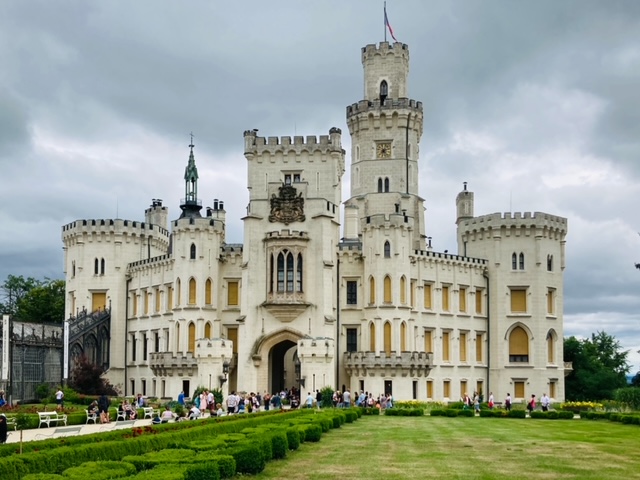 Kasteel Hluboká wordt beschouwd als een van de mooiste vestingen van Tsjechië. De eerste steenlegging gebeurde al in de 13de eeuw. De daaropvolgende periodes waren er voortdurend verbouwingen en uitbreidingen. Windsor Castle stond model voor het definitieve resultaat in de 19de eeuw. Het slot telt 140 kamers waarvan er een aantal nog volledig intact zijn. Er zijn talrijke kunstwerken te bezichtigen, waaronder handgeschilderd behang, fijn houtsnijwerk, Delfts blauw, Venetiaans glas en wandtapijten van Belgische makelij. Het interieur is gedeeltelijk te bezoeken. Er zijn verschillende soorten rondleidingen. De prijs varieert naargelang de rondgang. Ik bewonder alleen de buitenkant, de orangerie en de prachtige tuinen rond het kasteel. Er lijkt geen einde te komen aan het immense gebouw met zijn ontelbare torens.
