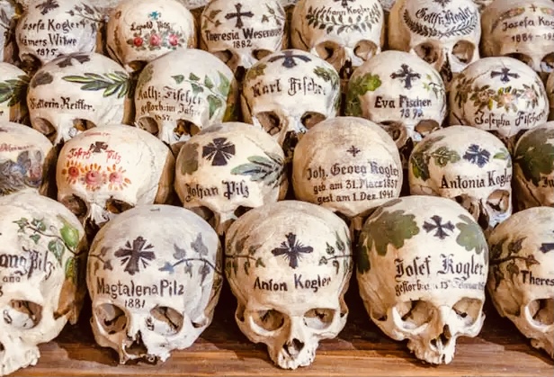 Hallstatt telt enkele opmerkelijke locaties. De macaberste van allemaal is ongetwijfeld het Beinhaus in de Michaels Kapelle. Omdat het plaatselijke kerkhof te klein was om alle overledenen te begraven dokterde men in 1720 een aparte oplossing uit. Na 10 tot 20 jaar werden de graven leeggemaakt om plaats te maken voor recentere doden. De schedels werden gereinigd en enkele weken in de zon gebleekt. De gewoonte om de graven met bloemen te versieren, werd verdergezet op de schedels. Kunstenaars decoreerden ze met bloemtekeningen. Van de 1200 doodshoofden zijn er 610 beschilderd. Zelfs de naam en sterfdatum van de overledene worden vermeld. Schedels van families zijn netjes bij elkaar gelegd. Het jongste exemplaar werd toegevoegd in 1995. De vrouw stierf in 1983 en het was haar laatste wens. Iemand die wil bijgezet worden in het Beinhaus moet dit tegenwoordig op voorhand vastleggen in zijn of haar testament. Omwille van de toenemende crematies is het niet meer nodig om het kerkhof regelmatig te ontruimen.
