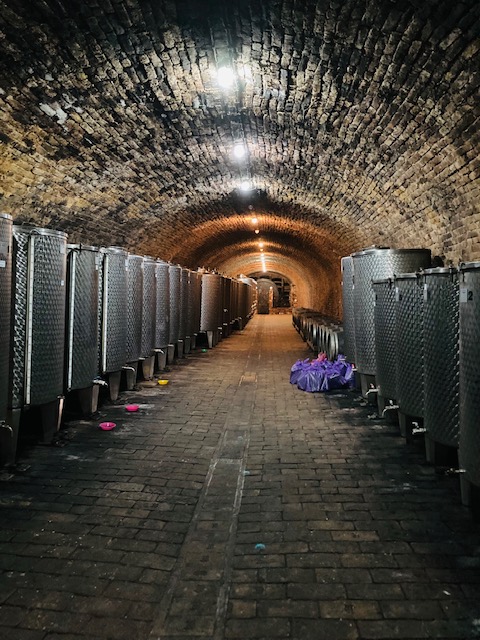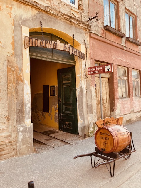 Een aantal wijnmakerijen liggen in het centrum van Sremski Karlovci. Wij bezoeken de Bajiloo Cellar (https://vinarijabajilo.rs/). Op hun website staat vermeld dat proeven elke dag mogelijk is tussen 9 uur en 19 uur, maar hier komen we van een kale reis thuis. Voor een wijndegustatie moeten we aansluiten bij een groep en dat vinden we niet zo leuk. We mogen wel een kijkje nemen in hun 19de eeuwse wijnkelders.