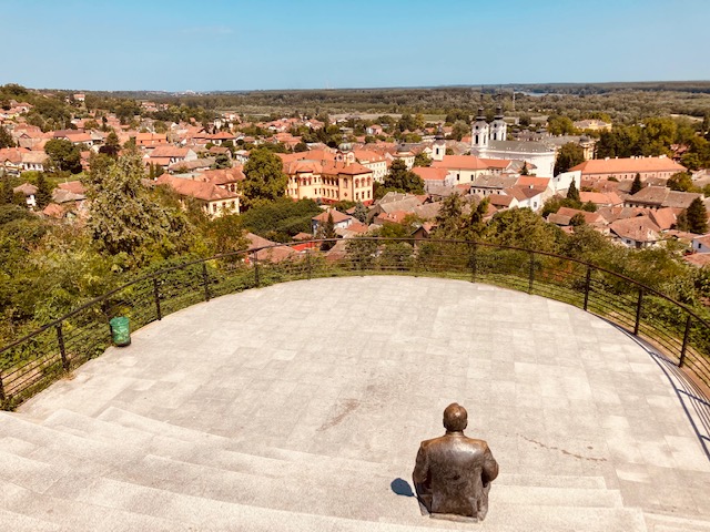 In een van de zijstraten net voor het stadscentrum is een panoramisch uitkijkpunt gebouwd. Hiervoor moet je een flink aantal trappen beklimmen. Op het hoogtepunt staat een kruisbeeld. Iets lager, op een van de trappen zit de bekende schrijver, dichter en acteur Duško Trifunović. De man woonde de laatste jaren van zijn leven in Sremski Karlovci en ligt begraven op het naburige kerkhof.