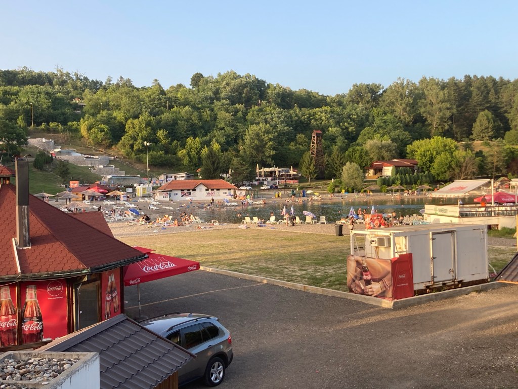 Tuzla was ooit een van de belangrijkste industriezones van de natie dankzij de zoutmeren. Miljoenen jaren geleden was dit stuk land onderdeel van de Pannonische Zee. De lokale bevolking leefde duizenden jaren van de zoutwinning, ook nadat de zee al lang was opgedroogd. In 2003 werd het resterende zoute water naar boven gehaald in de vorm van drie stuwmeren aangevuld met de kunstmatige Slano watervallen. Tuzla is daardoor de enige stad ter wereld met zoutmeren, zandstranden en watervallen in het stadscentrum. Het water zou geneeskrachtige eigenschappen hebben en daarnaast zorgt het voor ontspanning en waterpret bij temperaturen van 38 graden zoals vandaag. Het is er over de koppen lopen. Zonnekloppen aan de stadsstranden kan een hele dag voor een beperkte toegangsprijs, maar onze privégids heeft nog andere dingen in petto.