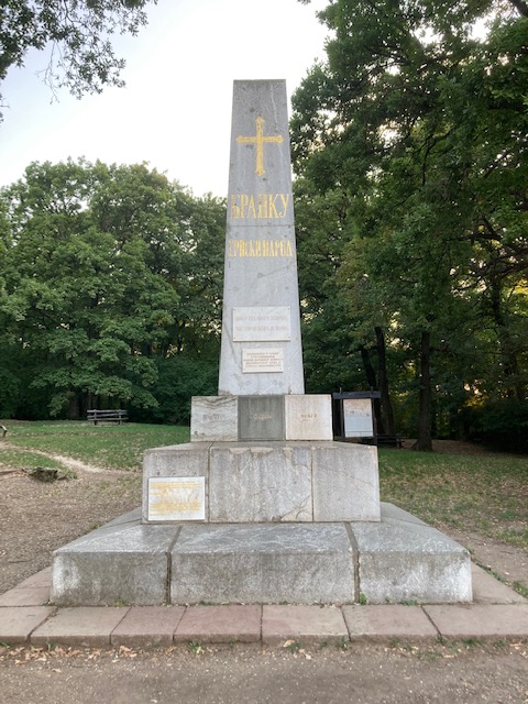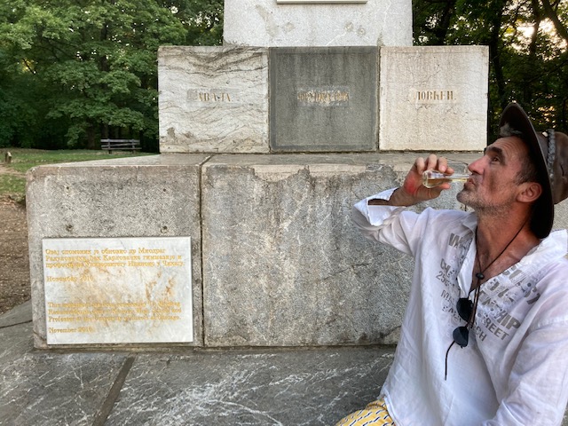 Vooraleer we vertrekken uit de charmante stad Sremski Karlovci moet er nog een ding gebeuren, een bezoek aan het graf van Branko Radičević, een beroemde Servische dichter die Radenko kopzorgen op school bezorgde. De nationaal geroemde poëet werd geboren in 1824 en stierf al op 29 jarige leeftijd aan tuberculose. Ondanks zijn korte leven, werden zijn schrijfsels verplichte lectuur op de schoolbanken. 30 jaar na zijn dood werd hij herbegraven op de top van een berg in Sremski Karlovci, de stad waar hij school liep. Het is een flinke zoek- en klimtocht door de bossen van het Fruška Gora nationaal park om het graf te vinden. Radenko spoelt er zijn jeugdfrustraties ter plekke door met een rakija.