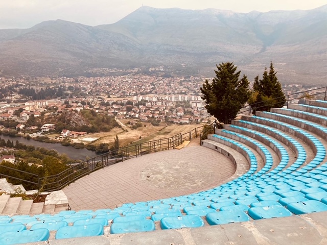 Međugorje is niet mijn ding. Het bergdorp werd een populair bedevaartsoord door een reeks verschijningen van Maria in 1981. Met meer dan een miljoen bezoekers per jaar is de stad het grootste rooms-katholieke mekka in Zuidoost Europa. Het toerisme in het centrum draait doorgaans op volle toeren. Er zijn dagelijks enkele erediensten in verschillende talen in de buitenlucht en ook biechten in je eigen taal behoort tot de mogelijkheden. Hiervoor is het aanschuiven geblazen aan het juiste “taalbordje”. Normaal worden hier de hele dag door volle bussen toeristen gedropt aan de kerk om te bidden. De kerkdiensten zijn via luidsprekers vanop grote afstand mee te volgen. Het is opmerkelijk stiller dan de andere jaren. Nu zijn er voornamelijk Italiaanse bedevaarders in Međugorje. Ik bezoek er de laatste campings voor ACSI en vervolg mijn weg richting Trebinje.