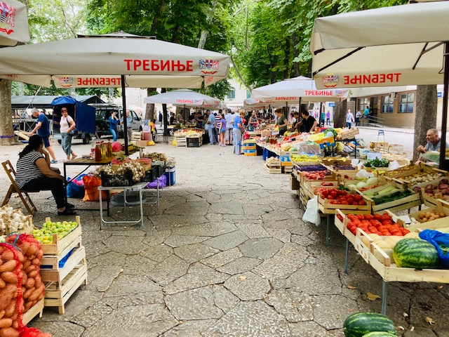 Trebinje heeft een oud stadscentrum met een groenten- en fruitmarkt, een park, een klooster met een openlucht theater op een heuvel en een historische brug. De stad dankt zijn naam aan Napoleon die tijdens zijn doortocht de woorden “tres bien” liet vallen. Dat is althans een van de legendes. Mijn doortocht begint in de kleine binnenstad die meteen opvalt omwille van de vele terrassen rondom de markt. Het oude centrum is niet groter dan een zakdoek. Het omvat het marktplein, een paar zijstraten en het nabijgelegen park dat een groen cachet geeft aan het geheel.