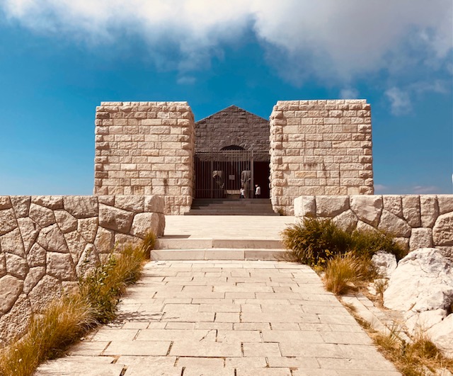 Lovćen is niet alleen de naam van het nationaal park, maar ook van de berg die de omgeving domineert. De berg heeft 2 toppen: de Štirovnik van 1749 m en de Jezerski vrh van 1657 m. Het grootste en meest belangrijke monument van het nationaal park is het mausoleum van Petar Petrović Njegoš, gelegen op de top van de Jezerski vrh. De man was een belangrijk heerser, bisschop en dichter. Hij leefde in de 19de eeuw en stierf op 38 jarige leeftijd aan tuberculose. Zijn graftombe is het hoogst gelegen mausoleum ter wereld en dat heb ik in mijn kuiten gevoeld tijdens de wandeling naar de top. Na een voettocht van 8 km bergop, begint het echte klimwerk pas. Als orgelpunt volgen er nog 461 trappen, deels door een tunnel.