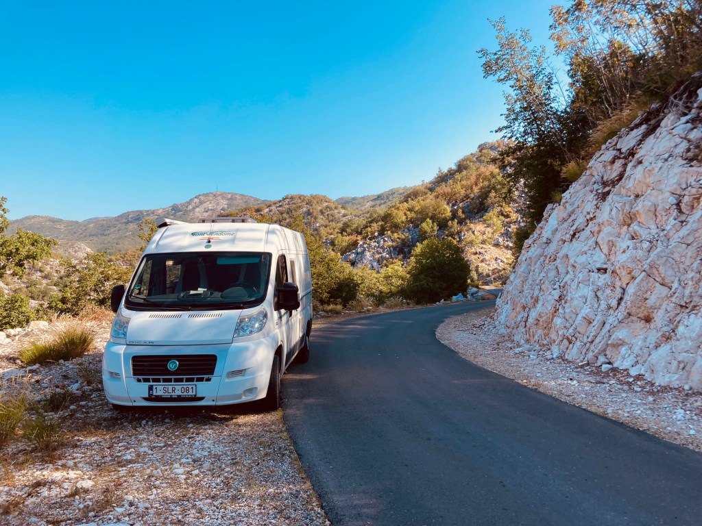 Op mijn bestemming in het Nationaal park Lovćen parkeer ik de bus onder de bomen op de parking van het bezoekerscentrum. Er is een speeltuin, een koffietent en een restaurant. De plek is gratis en het is toegelaten om te overnachten. Ik heb heb gezelschap van een Frans gezin dat een wereldreis maakt van 2 jaar. Ik ontmoette hen al een keer in Bosnië.
