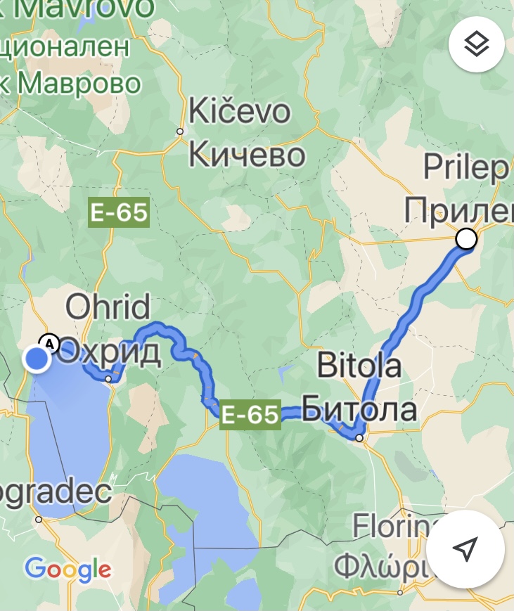 Struga ligt aan het meer van Ohrid op de grens van Noord-Macedonië en Albanië. Het is een van de oudste en diepste meren van Europa. De hoofdroute naar deze bestemming is de A3. Het is een weg met veel gedaantes. Het wegdek ziet er op het eerste gezicht goed uit, maar schijn bedriegt. Het tarmac lijkt om de paar meter aan elkaar gelast waarbij de dwarse naden dikke bobbels vormen. Het is rammelen geblazen tot in Bitola, 44 km verderop. De inhoud van de kasten is meteen herschikt. Daarna wordt het gelukkig beter. Vanaf Jankovec wordt de A3 een smallere bergweg maar het traject blijft vlot berijdbaar. Na 2 uur is de aankomst een feit.
