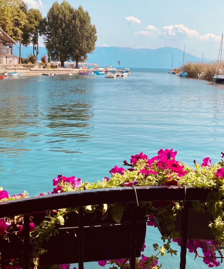 Struga telt iets meer dan 60.000 inwoners en is de op een na grootste stad aan het water. Op wat monumenten en kerken na valt er niet zoveel te beleven. In de brede, autovrije hoofdstraat zijn een aantal winkels, terrassen en een kerkje. De boulevard is versierd met veelkleurige paraplu’s. Ze hangen er al een tijd. De kleuren zijn al wat vervaagd. Ik ben hier snel uitgekeken.