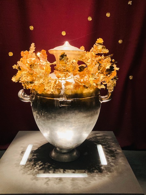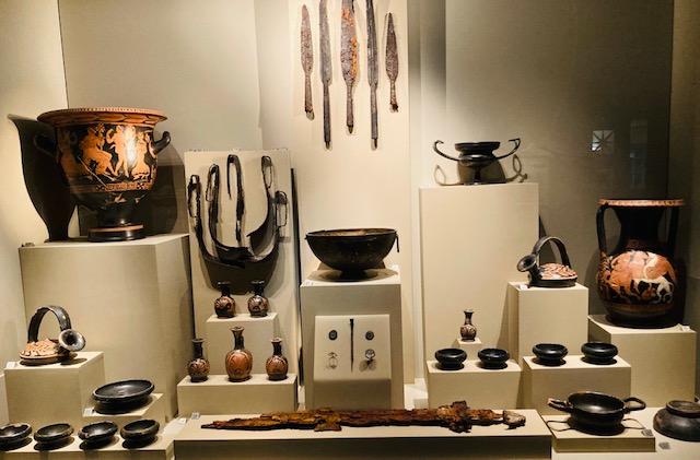 De voorwerpen die in de graven werden gevonden, zijn in waterdichte, glazen “aquariums” tentoongesteld. Naast alledaagse gebruiksvoorwerpen en sculpturen zijn de fijne, gouden sieraden uit de 4de eeuw voor Christus het meest tot de verbeelding sprekend. De museumrondgang eindigt met een mooie tekst van zijn ontdekker, Manolis Andronikos. Het blootleggen van de historische graftombes sloeg zelfs hem met verstomming.