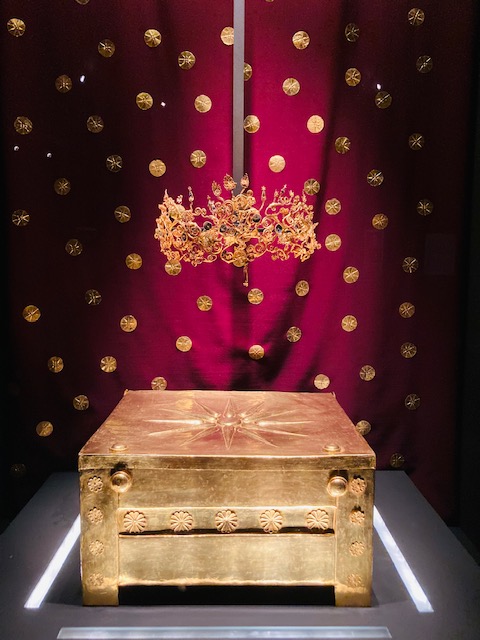 De grafheuvel herbergt een arsenaal aan waardevolle schatten in uitstekende conditie. Het museum is in het duister gehuld en heeft een constante, koele temperatuur om de prachtige objecten in de beste omstandigheden te bewaren. Foto’s nemen zonder flash is toegestaan. Het museum herbergt de resten van 3 graftombes. Er was een tijd discussie over de identiteit van de doden. Antropologisch onderzoek heeft bevestigd dat het wel degelijk om de botten van Philippos de 2e gaat. Uit de geschiedenisboeken wist men al dat de voormalige Macedonische koning tijdens een van zijn veldslagen een pijl in het rechteroog kreeg en blind werd. Fracturen in het aangezicht bevestigden met zekerheid zijn identiteit.