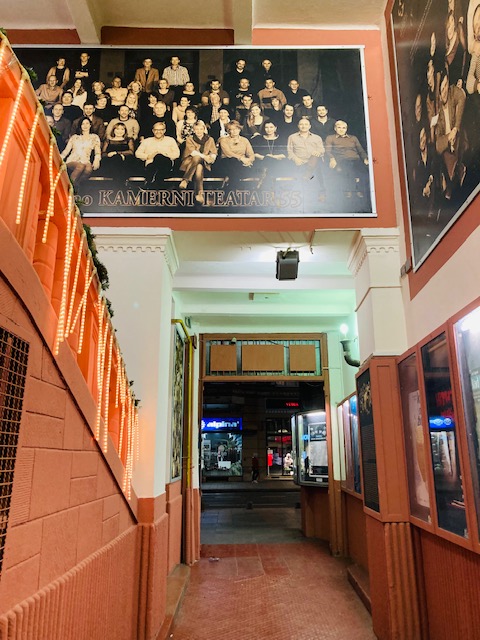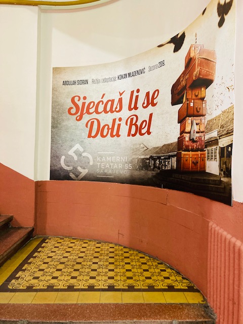 De ingang van het Kamerni teatar 55 (kamertheater) in de Maršala Tita straat spreekt tot de verbeelding. Er is geen voorstelling bezig. Het gebouw is vanavond gesloten. De inkomhal ruikt naar de jaren 50 en dat blijkt te kloppen. Het theater werd opgericht in 1955 door ene Jurislav Korenić. De theaterzaal bied plaats aan 160 toeschouwers. De opbouw is bijzonder omwille van een ringvormige tribune rond het podium. Ook tijdens de Bosnische oorlog werd er nog theater gespeeld als cultureel verzet tegen agressie zonder politieke, religieuze of ideologische voorkeur. Jammer dat we het gebouw enkel aan de buitenkant kunnen bewonderen. In Sarajevo valt altijd iets nieuws te ontdekken…