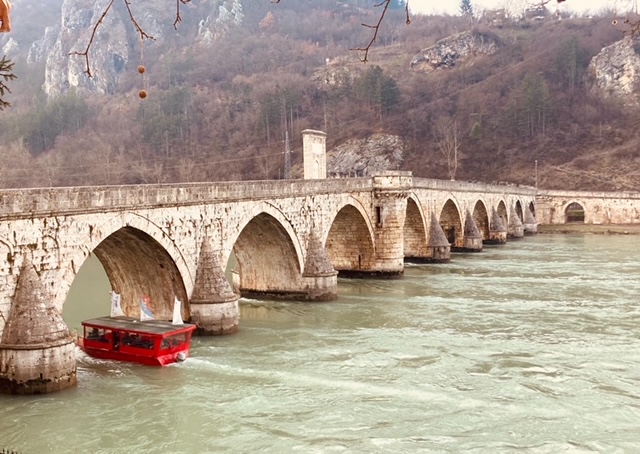 Op weg naar Sarajevo, net voorbij de Servisch-Bosnische grens ligt het stadje Višegrad. De oude Ottomaanse brug over de Drina rivier met de onuitspreekbare naam Mehmed Paša Sokolović valt meteen op. Het historische bouwwerk werd op het einde van de 16de eeuw in elkaar geknutseld tijdens de Turkse overheersing door architect Mimar Koca Sinan. De stenen constructie telt maar liefst 11 bogen en is 179,5 m lang. Ondanks zware beschadigingen door natuur- en oorlogsgeweld in de loop der geschiedenis behield het bouwwerk zijn authenticiteit. De fundamenten blijven kwetsbaar omwille van twee waterkrachtcentrales in de buurt die het waterpeil continue beïnvloeden. Sinds 2007 staat de Mehmed Paša Sokolović brug op de Unesco werelderfgoedlijst. Sindsdien wordt geprobeerd om de historische brug te vrijwaren van verdere schade. De plek is autovrij en wordt veelvuldig bezocht door toeristen. Het is een van de meest gefotografeerde plaatsen van Višegrad. Voor wie de brug vanop het water wil bewonderen, is een boottrip nooit veraf. Wij blijven op het droge.