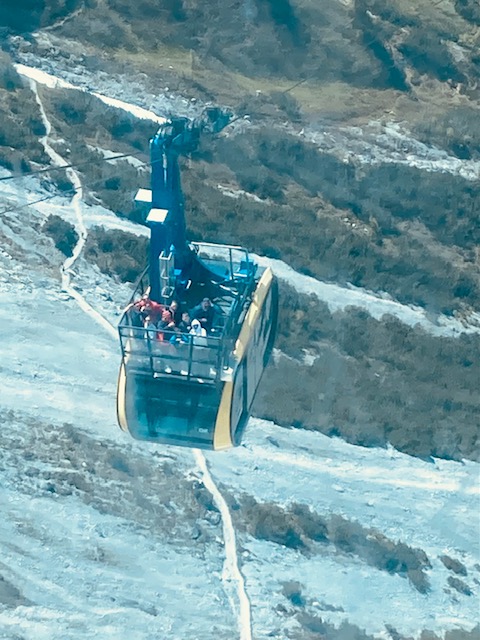 Het is tijd om warmere oorden op te zoeken en weer af te dalen. Aan de ingang van het gondelstation kan je het tolticket scannen. Dat is in ieder geval 20 € tolgeld gewonnen. Tijdens de afdalende gondelvlucht is het nog een laatste keer genieten van het gletsjerlandschap.