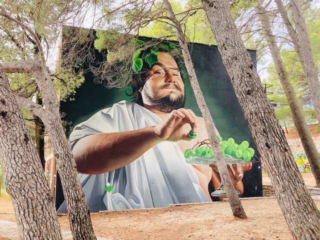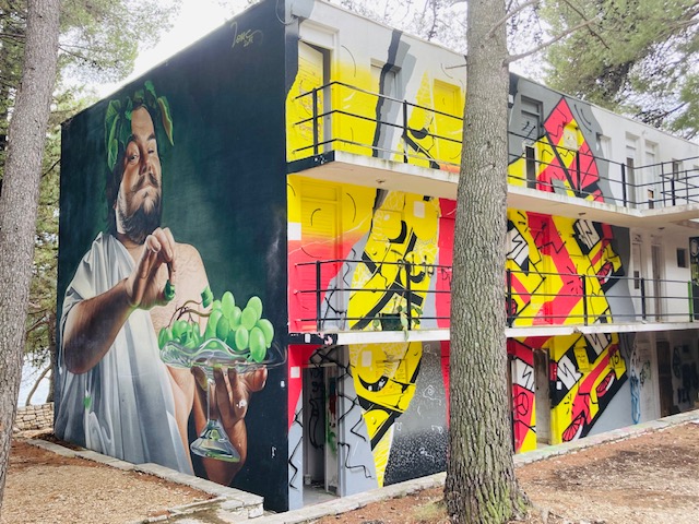 Langs het vervolgtraject treffen we een aantal verlaten hotels waarvan de constructie op het eerste gezicht nog degelijk lijkt. Hoewel op de eilanden niet werd gevochten tijdens de burgeroorlog hebben deze gebouwen de overgang van Joegoslavië naar het onafhankelijke Kroatië niet overleefd. De verlaten panden werden gedecoreerd met prachtige graffitiwerken. De talrijke creaties worden jaarlijks overschilderd tijdens een graffitifestival. De enige constante is het kolossale kunstwerk van een druiven etende man.