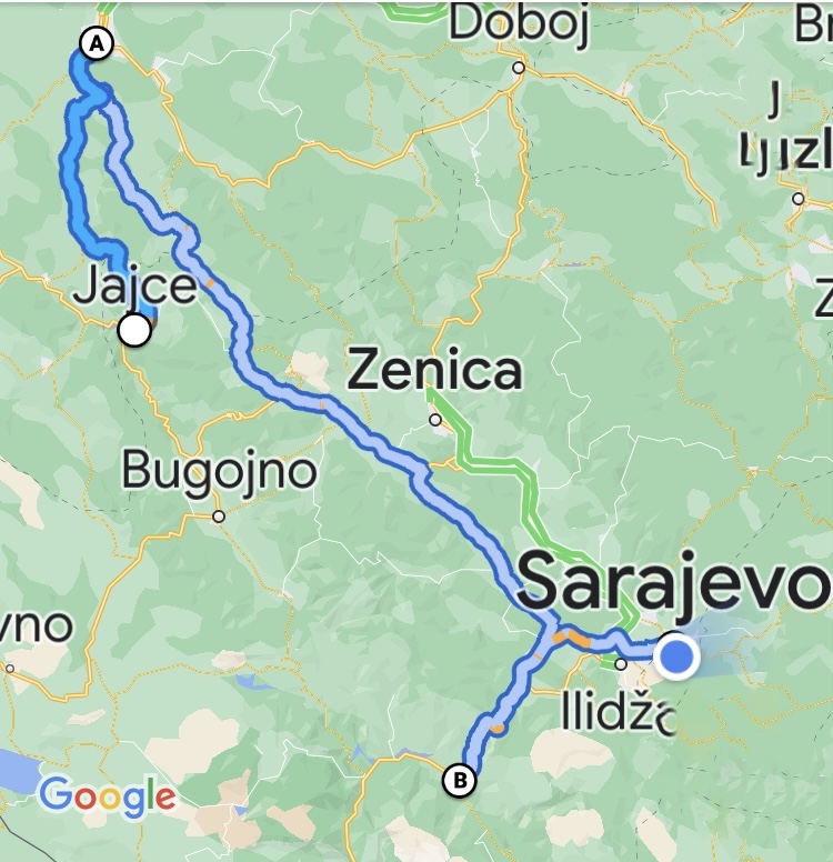 Route Jajce – Banja Luka – Konjic – Sarajevo