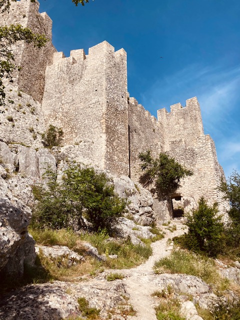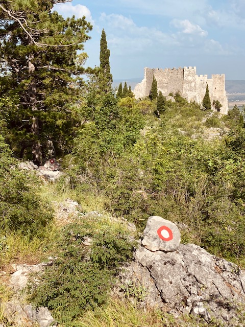 Er staan veel campingbezoeken voor ACSI op de planning in de regio rond Mostar. Het makkelijkst is om een langere periode op dezelfde plek te blijven, de campings per fiets te bezoeken en tegelijkertijd enkele nieuwe dingen te ontdekken in de omgeving. Er zijn meerdere leuke kampeerterreinen aan de Buna rivier in Blagaj maar mijn voorkeur gaat steevast uit naar Camping Mali Wimbledon (http://www.campingmostar.ba/) omwille van het zwembad. Bij warm weer is een verfrissende duik af en toe welkom. Voor een complete Blagaj beleving, roep ik de hulp in van Jelle Scherpereel. Deze sportieve Belg woont en werkt al jarenlang in Bosnië, spreekt de taal en kent de omgeving als zijn broekzak. Hij troont me mee naar Stjepan Grad, het oude fort van Blagaj. De vesting werd waarschijnlijk al in de 10de eeuw gebouwd door Illyrische stammen, vervolgens versterkt door Romeinen en nadien nog eens door de Bosnische heersers. De Ottomanen maakten het werk uiteindelijk helemaal af. De historische locatie ligt op een 310 m hoge karstheuvel en is gratis te bezoeken. Ter plaatse geraken is de enige vereiste. Parkeren kan op een open plek aan de voet van de heuvel van waaruit een kronkelend wandelpad naar boven loopt van ongeveer 1 km. De buitenmuren van het fort zijn goed bewaard gebleven. Het is een geweldige plek om de vallei te observeren. Het pad is goed gemarkeerd door een witte stip met een rode cirkel eromheen.