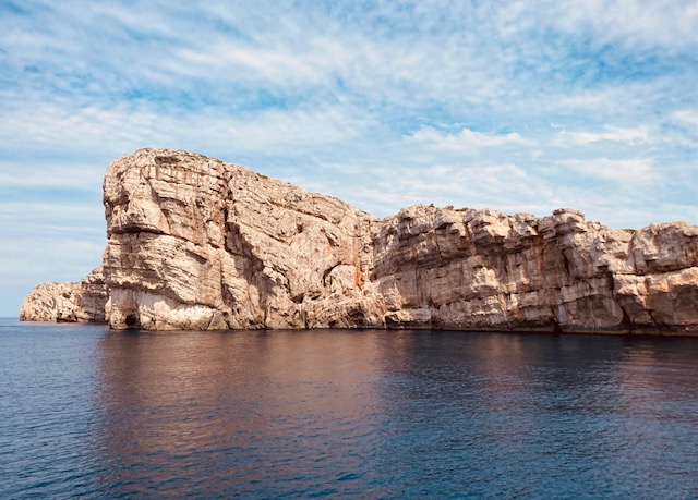 Via de Murter Zee voor de stad Šibenik bereiken we na een paar uur de eerste eilandrotsen. De Kornati archipel is een verzameling van 148 grotendeels onbewoonde, kleine eilanden. Het indrukwekkende natuurverschijnsel van kale kliffen doet denken aan een maanlandschap. Dat is niet altijd zo geweest. Vroeger waren er bossen en werden er zelfs olijven geteeld. De bomen werden gekapt om grasvelden te creëren voor schapen. Overbegrazing zorgde ervoor dat enkel een karstlandschap overbleef. Door menselijk ingrijpen, werd het uitzicht van de natuur drastisch veranderd. Sinds 1980 zijn 89 van de 148 eilanden beschermd natuurgebied. De aandacht gaat sindsdien uit naar het bewaren van de zee- en ecosystemen. In de helblauwe wateren groeit zeldzaam koraal en er zwemmen felgekleurde vissen. Snorkelen in de baaien van de Kornati eilanden is een lust voor het oog. Jammer genoeg maakt de Destina boot geen tijd voor een stop met dit doel.