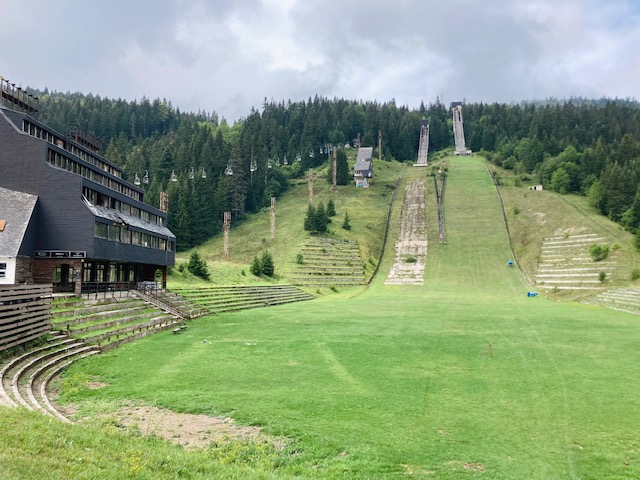 De rit ernaar toe gaat via het Igman plateau in de buurt van Sarajevo, dat in 1984 het toneel was voor de ski- en langlaufcompetities tijdens de Olympische Winterspelen. Langlaufen was al jaren populair in het sneeuwzekere gebied. Ter gelegenheid van de Olympische spelen werd de accommodatie uitgebreid met 2 skischansen en een skilift. De populaire schansspring competitie werd indertijd bijgewoond door duizenden supporters. Jammer genoeg was de dure investering geen lang leven beschoren omwille van de burgeroorlog in de jaren 90. De verlaten ruïnes en het olympisch podium zijn nog steeds te bezichtigen. Stiekem op het hoogste schavot klauteren en juichen is toegelaten. De toegang is helemaal gratis.