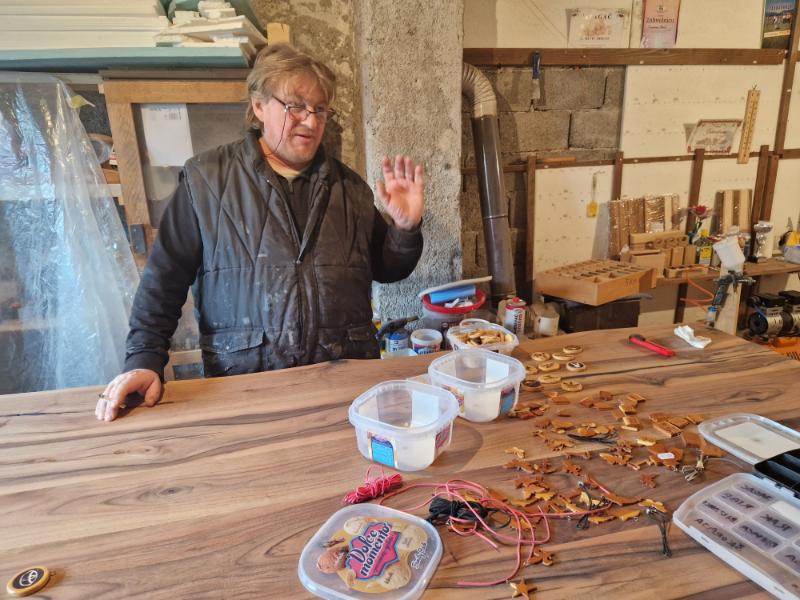 Even buiten het centrum vinden we het atelier van Suvenirnica Mević (https://suvenirnica-mevic.business.site/). De man ontwerpt houten gebruiksvoorwerpen van lamphouders tot meubelen en zelfs balkon- en tuinhekken of volledige kinderkamers op vraag en naar ontwerp van de klant. In de categorie “toerisme” zitten kleinere voorwerpen zoals keukenmateriaal of hangertjes met spreuken en voornamen. Door de coronapandemie blijven de toeristen de laatste jaren weg en geraakt de verzameling souvenirs stilaan uitgeput. Misschien geeft ons bezoek hoop om er een vervolg aan te breien. Het is sowieso interessant om de creaties van de man te bewonderen. De tafelontwerpen zijn prachtig, maar ze passen niet in de camper…