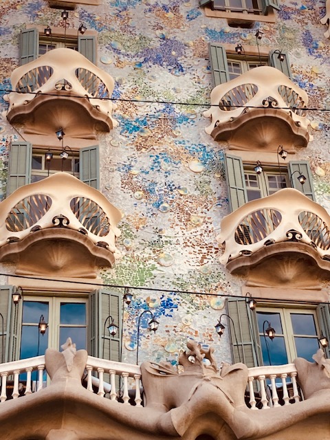 Camp Nou is de volgende bestemming. Dat wordt een stevige wandeling, Die gaat via een kleine omweg langs Casa Batlló, eveneens een creatie van Antoni Gaudi. Toegangstickets zijn ook hier alleen online te verkrijgen aan verschillende prijzen. Soms kosten ze 29 € en soms veel meer. 11 jaar geleden ben ik hier al eens geweest. Een bezoek is zeer boeiend, maar budgettair loopt de citytrip een beetje uit de hand. De buitenkant kan me ook bekoren. Het huis werd oorspronkelijk gebouwd in 1877. Gaudi verbouwde het tussen 1904 en 1906 voor een textielmagnaat met de naam Batlló. De zakenman gaf als opdracht dat het niet op een gewoon huis mocht lijken. Dat is zeer goed gelukt. Typisch aan de woning zijn de vele rondingen en de kunstzinnige attributen. Fantasierijk is het wel. De voorgevel telt een aantal opvallende balkons en is bedekt met mozaïek. De familie Batlló woonde tot in 1945 op de benedenverdieping. De bovenverdiepingen werden in die tijd verhuurd. Het huis is in de jaren 90 volledig gerestaureerd door de huidige eigenaren en opengesteld voor het publiek. De totale waarde bedraagt naar schatting 70 miljoen €. Casa Batlló staat sinds 2005 op de werelderfgoedlijst van Unesco.