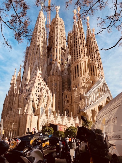 Zoals verwacht zijn er geen loketten om entreetickets te kopen. Rond de indrukwekkende kerk staan informatieborden met QR-codes. Door deze te scannen met je smartphone, kom je terecht op de juiste website. Vooraleer je tickets kan boeken, moet je eerst een app downloaden. Wat een gedoe. Het vroegst beschikbare tijdstip voor een bezoek is pas morgen. De toegang kost 26 € en daarmee mag je alleen de kerk en de bijbehorende museumgalerij betreden. Toegang tot een van de torens is nog een beetje duurder. De Sagrada Familia is een huzarenstuk dat nog niet volledig klaar is. Het wordt afgewerkt door donaties en sinds de jaren 80 ook door de verkoop van entreetickets. Ik heb op deze manier in ieder geval enkele stenen gesponsord en al een glimp opgevangen van het schitterende gebouw. Morgen meer over deze hotspot…