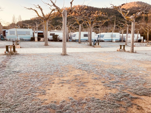 Terug naar Catalonië met Prades in het vizier! Het stadje met net geen 600 inwoners dankt zijn naam aan de Muntanyes de Prades oftewel het Prades-gebergte. Het middelhoge bergmassief met als hoogste bergtop Tossal de la Baltasana (1203 m) loopt parallel met de Middellandse Zeekust van Catalonië. Prades ligt op een hoogte van 953 m. De gemiddelde minimum- en maximumtemperaturen schommelen in de maand januari tussen 2 en 8 graden. Sneeuw en vriestemperaturen zijn een normaal verschijnsel. Camping Prades (https://www.campingprades.com/) aan de rand van de stad heeft dat allemaal voorzien. De douches en toiletten zijn verwarmd. Het restaurant met bar, het winkeltje en de wellness faciliteiten zijn in de wintermaanden open. De verwarming is nodig want de nachten zijn koud. Gelukkig vriest het alleen ’s nachts. Overdag is het heerlijk terrasjesweer.