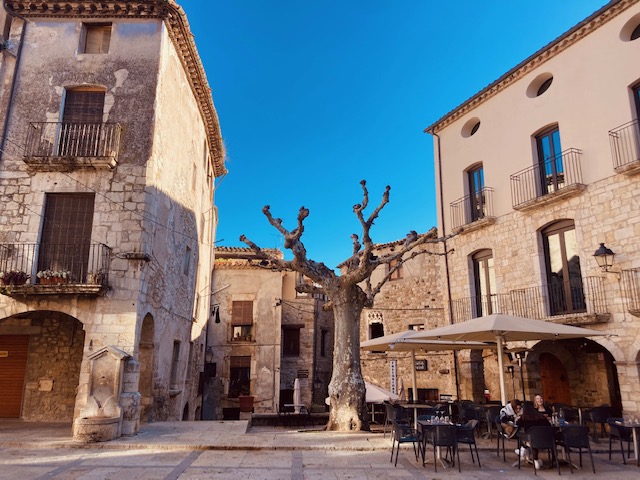 Ja hoor, ik loop ook nog over de brug en dat is best imponerend. Besalú had in de loop der geschiedenis heel wat bewoners. Eerst kwamen de Romeinen, daarna de Visigoten, de Franken, de Moren en de Joden. Er zijn nog heel wat restanten uit die tijden. De Joodse wijk begint aan de andere kant van de brug en loopt door tot aan het gezellig pleintje, Plaça Major. In deze buurt kan je een zeldzame mikwe of mikwa bezoeken. Dat is een Joods badhuis met als doel om zich ritueel te reinigen. Ik verkies een van de terrassen op Plaça Major om nog even te genieten van een glas wijn en de zon. De rust is van korte duur. Het is te leuk om door de smalle straatjes te dwalen en telkens nieuwe middeleeuwse huizen en gebouwen te ontdekken. Besalú is een bijzondere plek met een inkijk in het verleden.