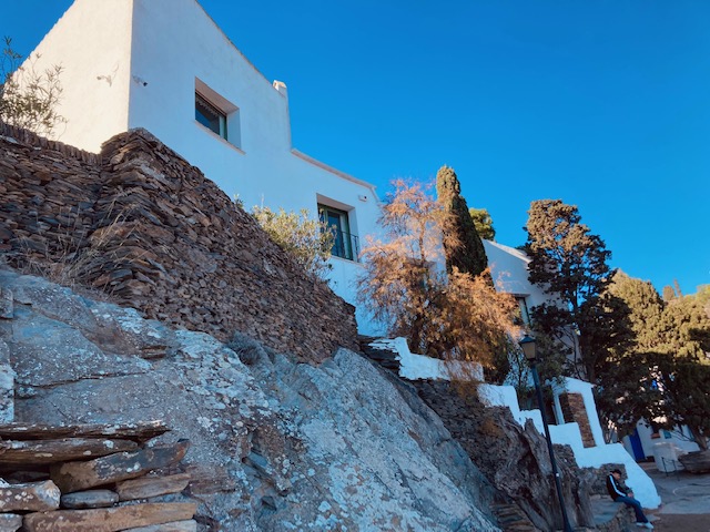 Salvador Dali is een van de meest excentrieke figuren uit de vorige eeuw. Hij was vooral bekend als de kunstschilder met de gekke snor, maar in feite deed hij veel meer dan dat. Dali hield zich ook bezig met film, schrijven, mode, fotografie, beeldhouwen, reclame,… De man vestigde zich in 1930 in een klein vissershuis van slechts enkele vierkante meters groot in Port Lligat nabij Cadaqués. Gedurende 40 jaar werd het kleine huis alsmaar een groter. Door de aankoop van een aantal aangrenzende vissershuisjes die met elkaar verbonden werden, creëerde hij een ondoorgrondelijk labyrint. Sinds 1997 werd het huis opengesteld voor het grote publiek en dat is een tussenstop waard. Het enige probleem zijn de entreetickets. De website vermeldt dat online reserveren noodzakelijk is en daar word ik niet vrolijk van. De route tussen Roses en Cadaqués is een toeristische attractie op zich en die was sowieso gepland. De poging om vervolgens toch te stoppen zonder reservering draait gelukkig uit op een succes. Er zijn toevallig enkele annuleringen of mensen die te laat opdagen en zo hun ticket onherroepelijk kwijtspelen.