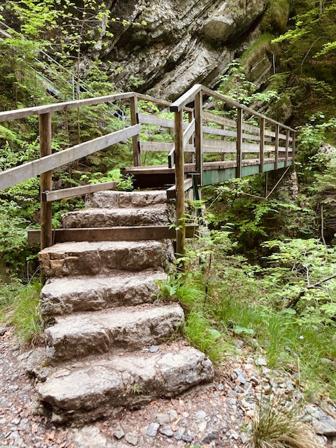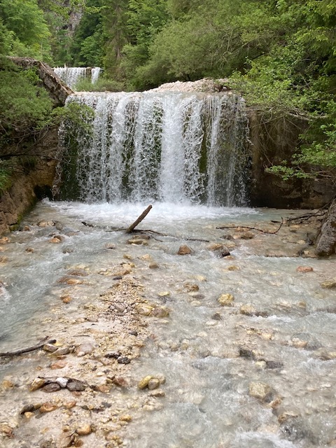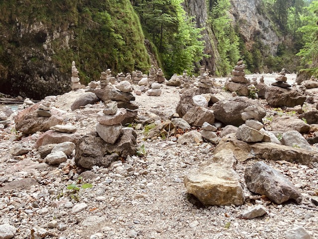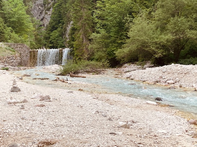 Het gebied rond Gozd Martuljek is de perfecte setting voor wandel- en fietsvakanties. Terwijl Patrick en mama Mieke een fietstocht maken naar Kranjska gora via goed gemarkeerde fietspaden, trek ik mijn wandelschoenen aan voor een van de vele wandelroutes in de buurt. Het traject leidt naar de attractieve Martuljek watervallen. De lager gelegen watervallen zijn makkelijk te bereiken via een vlakke route. Het water stort trapsgewijs naar beneden door een schilderachtige rivierbedding waar tientallen steenmannetjes door mensenhanden opgestapeld staan.