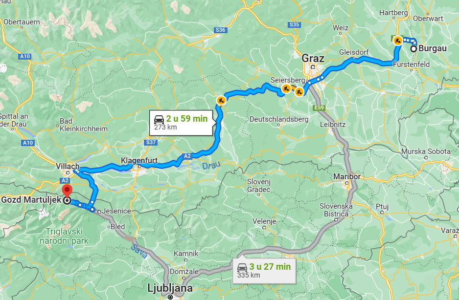 De route naar Gozd Martuljek heeft een stevige verrassing in petto. Bij de grens tussen Oostenrijk en Slovenië ligt de Wurzenpass. De top ligt slechts op 1073 m hoogte. Maar schijn bedriegt. De bergpas is verboden voor auto’s met een aanhangwagen of caravan. De reden wordt meteen duidelijk. Een stuk weg van zo’n 600 m heeft een hellingsgraad van maar liefst 18%. De buscamper heeft de grootste moeite om de helling te trotseren en ik ben er ook niet helemaal gerust in. Het zijn de langste 600 m ooit en de opluchting bij de top is groot.