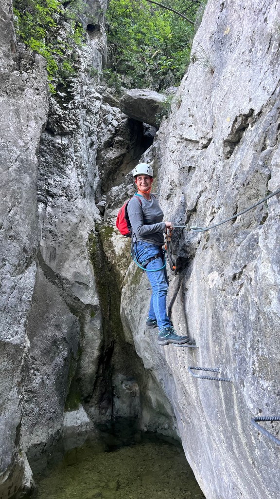 Wie omhoog klimt, moet ook weer naar beneden. Tot slot volgt een afdaling van ongeveer drie kwartier die weer naar het beginpunt leidt. Een via ferrata ervaring en wat stramme spieren rijker zullen vanavond waarschijnlijk voor een goede nachtrust zorgen. Met dank aan Julijana voor de mooie belevenis…