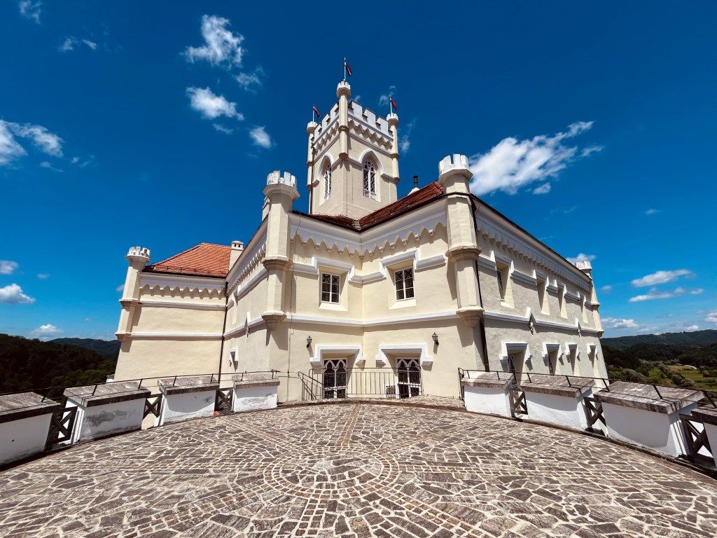 Het kasteel van de dag is Dvor Trakošcan in het gelijknamige dorp Trakošcan. Het werd waarschijnlijk gebouwd in de dertiende eeuw als observatiefort om de weg naar Ptuj en de Bednja-vallei te bewaken. Het is niet bekend wie in die tijd de eigenaar was. Op het einde van de veertiende eeuw was de vesting in handen van de graven van Celje, een belangrijke adellijke familie uit Slovenië, die het toen voor het zeggen hadden in het graafschap Zagorje. Toen er geen erfgenamen meer waren, werden de eigendommen van de familie verdeeld onder belangrijke figuren van de legerleiding en dat duurde zo’n drie eeuwen lang. In 1566 werd het kasteel even eigendom van de staat. De toenmalige koning schonk Dvor Trakošcan uiteindelijk aan Juraj Drašković en zo kwam deze familie voor enkele eeuwen aan zet. In de negentiende eeuw werd het fort verbouwd tot een residentieel landhuis. Esthetiek werd belangrijker dan functionaliteit. Het park met een meer rondom het kasteel werd mooi aangelegd en de rijke familie gebruikte het eerder als buitenverblijf. Dvor Trakošcan liep veel schade op tijdens de Tweede Wereldoorlog. Hoewel de familie Drašković nog steeds nakomelingen telt, werd het kasteel na de oorlog weer eigendom van de staat die het grondig renoveerde. Het kasteel zelf schittert op de heuvel maar de omgeving rond het kasteel staat momenteel droog. Het vroegere meer dat stilaan op een modderpoel begon te lijken, wordt momenteel uitgebaggerd en in ere hersteld.
