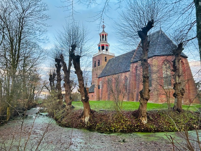 De eerste etappe is een opwarmertje. Deze is met ‘slechts’ 12 kilometer de kortste van allemaal. De eerste blikvanger is de gotische Petruskerk van Pieterburen. De kerk werd gebouwd in de eerste helft van de vijftiende eeuw en verder uitgebreid in de zeventiende eeuw. Het interieur zou erg fraai zijn maar dat heb ik niet gezien. In de wintermaanden is het gebouw tijdens weekdagen op slot.