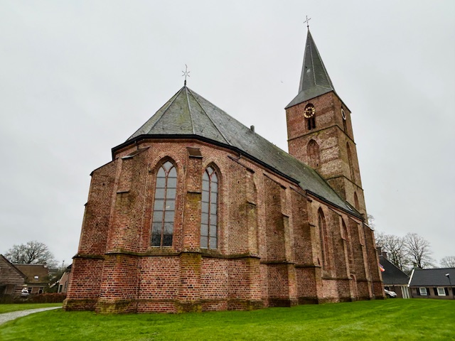 Voor de etappe van Rolde naar Schoonloo valt de keuze op een andere uitvalsbasis. Ik verhuis vroeg in de ochtend naar Camping Elperhof (https://www.elperhof.nl/) in Schoonloo, op 1,5 kilometer van het eindpunt van de route. De camping is in wintermodus. Het sanitair is gesloten, maar er is wel stroom. Het is altijd leuk om na een lange wandeltocht een verwarmde camper aan te treffen. Ter hoogte van Eetcafé Hegeman bij de rotonde vertrekt een bus naar het beginpunt van de etappe in Rolde. Er is een goede verbinding. Zelfs in het weekend rijdt er elk uur een bus. De rit duurt slechts een kwartier. Weer terug stappen zal heel wat langer duren.