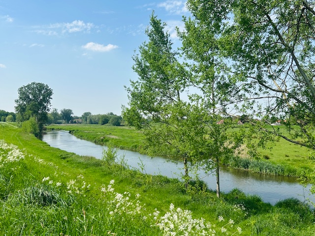 Het allerlaatste stuk vooraleer je de bewoonde wereld binnenloopt, gaat langs de Niers en dat levert nog een mooi plaatje op. Na de rivier volgt het centrum van Gennep. Hier plof ik tevreden neer op een terras. Nog 148 kilometer te gaan…