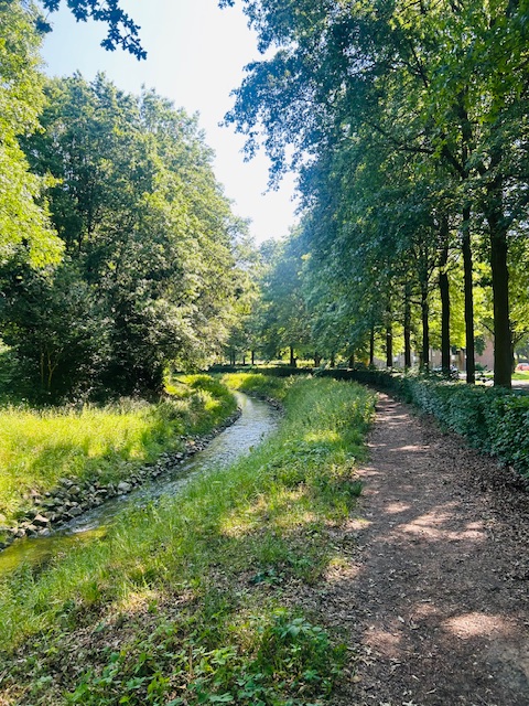 Het is verhuisdag. In deze regio is het iets lastiger om een camperplaats of camping te vinden die dicht bij het Pieterpad ligt en die geschikt is als uitvalsbasis voor meerdere etappes. De keuze valt op Kampeercentrum Reigerhorst in Montfort voor een nacht. De bushalte ligt op 1,3 kilometer van het kampeerterrein en het is vrij eenvoudig om Sittard te bereiken met de bus en de trein. Het wordt nogmaals een etappe in de omgekeerde richting. Het is een speciale dag want Dante en Seyyah komen me een paar dagen gezelschap houden. Seyyah is misschien een beetje in het voordeel. Zij is van Turkse origine en leidde voor ze bij Dante terecht kwam een zwerversbestaan. Ze is gewoon aan de warmte en ze heeft vier poten. Bovendien betekent haar naam in het Nederlands ‘reiziger’. Het dier lijkt geknipt om het Pieterpad te lopen…