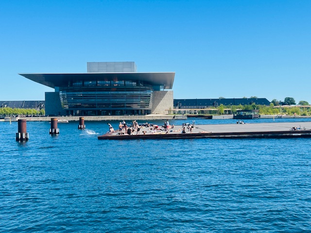 De stadswandeling loopt stilaan op zijn einde. Het traject naar de bushalte gaat langs het Larsens Plads, een brede havenboulevard die vroeger gebruikt werd voor afvaarten naar het veelbelovende Amerika. Aan de overkant van het kanaal staat het opvallende operagebouw te pronken, ontworpen door Henning Larsen. Het gebouw is bijna helemaal omgeven door water, net zoals de beroemde opera van Sydney. De Deense variant werd geopend in 2005 na een bouwproces van drie jaar. Ook op het Kvæsthusbroen platform, gelegen voor de opera, gaan mensen bij warm weer uit de kleren voor een frisse duik.
