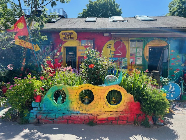 Christiania ligt in het stadsdeel Christianshavn. In 1970 kraakten een aantal hippies een verlaten militair kazernecomplex uit de zeventiende eeuw. Zij wilden een vrijstad stichten zonder BTW-verplichtingen en met eigen wetten. In het begin probeerde de Deense regering de krakers te verdrijven, maar uiteindelijk evolueerde het naar een sociaal experiment dat voorzichtig getolereerd werd. Christiania bestaat uit een mix van kleurrijke huisjes, veel graffiti, opvallende kunstwerken en slogans tegen de gevestigde orde. De vele cafés, bars en restaurantjes zorgen voor leven in de brouwerij. In de zomer worden er regelmatig concerten en festivals georganiseerd die tal van bezoekers trekken. Dat betekent niet dat alles koek en ei is in dit stukje Kopenhagen. Sinds april 2024 werd Pusher Street opgeheven door de ordediensten omdat er te veel druggerelateerde problemen waren. Dat zorgt nog steeds voor onrust in de straten van Christiania. Bewoners willen niet meer dat bezoekers foto’s of video’s maken tijdens hun bezoek. Blijkbaar worden toeristen soms lastig gevallen als ze dat toch doen. Ik weet van niks…