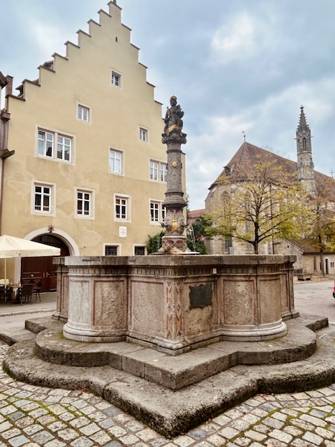 Rothenburg ob der Tauber telt veel fonteinen. In de straat Herngasse, vroeger een deftige wijk met statige koopmanshuizen, vind je de elegante Herbrunnen. Deze zestiende eeuwse fontein in renaissancestijl met een overvloedig versierde waterpomp voorzag de rijke bewoners van water.